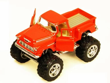 Make an impression with this small-scale pick-up truck from the 50s. This 1955 Chevy Stepside Pickup Truck with Rubber Big Wheel is a 1/32 scale diecast model replica. It comes in orange and features openable doors, and pullback motor action. It’s a great piece for any pick-up truck collection, and a must-have for die-hard Chevrolet fanatics!