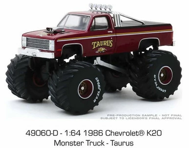 1985 Chevy K20 Monster Truck, Kings of Crunch – Taurus – Greenlight 49060D/48 – 1/64 Diecast Car