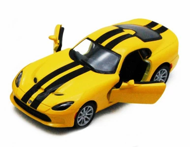 This Dodge SRT Viper GTS is a 1/36 scale diecast model replica. It comes in a yellow color and features openable doors and pullback action. A superb choice for any sportscar collection, and a real gem for Dodge Viper enthusiasts!