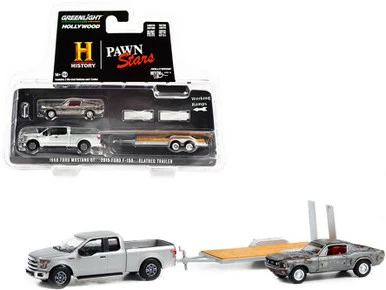 2015 Ford F-150 w/ 1968 Ford Mustang GT & Trailer, Pawn Stars – Greenlight – 1/64 scale Diecast Car