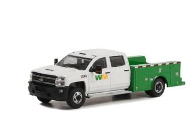 Spice up your collection with this high-performance pickup truck from Greenlight! This 2018 Chevrolet Silverado 3500HD Dually Service Truck is a 1/64 scale model replica. It comes in white and features “waste management”, real rubber tires, detailed exterior, metal body and chassis, comes in a blister pack. It’s a terrific piece for any pickup truck collection, and a must-have for unwavering Chevrolet aficionados!