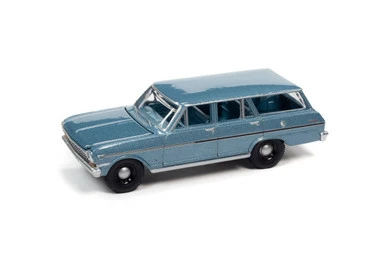1963 Chevy II Nova 400 Wagon, Silver Blue Poly – AWSP083/24B – 1/64 scale Diecast Model Toy Car