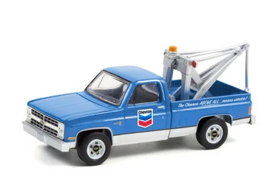 Diecast collectors will adore this high-performance tow truck from Greenlight! This Chevron 1983 Chevrolet C20 Scottsdale with Drop-In Tow Hook is a 1/64 scale model replica. It comes in blue and features real rubber tires, detailed exterior, metal body and chassis, comes in a blister pack. It’s a magnificent model for any tow truck collection, and a real gem for faithful Chevrolet admirers!