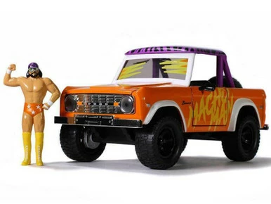 Every car lover dreams about this neat tv car from Jada Toys! This 1973 Ford Bronco Pickup Truck with “Macho Man” Randy Savage Diecast Figurine is a 1/24 scale model replica. It comes in orange and features opening hood and doors, rubber tires, 3 inch tall figurine. It’s a brilliant piece for any tv car collection, and a real gem for devoted WWE aficionados!