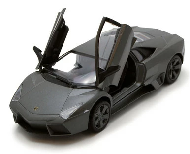 Inspired by new aeuronautic trends, the Lamborghini Reventon cuts the image of an ergonomic sports coupe with the aura and demeanor of a luxury car. Only 20 Reventons were ever produced, so this 1/24 scale replica may be the only one of these you ever see! The Reventón comes with a consistent style and immaculate finishing down to the buttons and knobs. Finished in stunning gray, this 1/24 scale diecast Reventon comes with two-openable gullwing doors and rolling wheels. Reventón is a true Italian masterpiece and a limited-edition work of art, perfect for any sportscar collection.